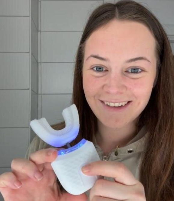 Die Oralux U-Shape Zahnbürste vereint neueste Technologie mit maximalem Komfort. Dank der innovativen Form werden alle Zahnflächen gleichzeitig gereinigt. Viel gründlicher und schneller als mit herkömmlichen Bürsten.
